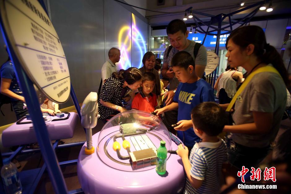 暑假期间,众多家长带小朋友到香港科学馆参观学习,充实科普知识。位于香港尖沙咀东的香港科学馆是香港一所以科学为主题的博物馆。科学馆楼高4层,共16个展区,楼面总面积为13500平方米,拥有约500件展品,覆盖各不同种类之科学,其中约有70%展品可供参观者亲自操作。中新社发 洪少葵 摄
