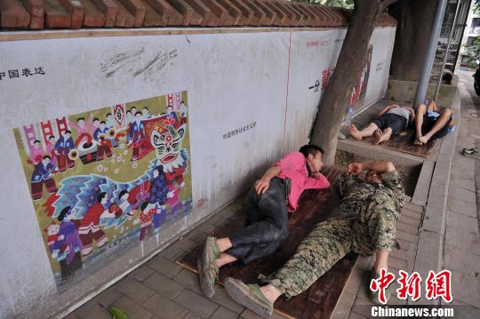 图为工地上的农民工正在树荫下午睡。 陈超 摄