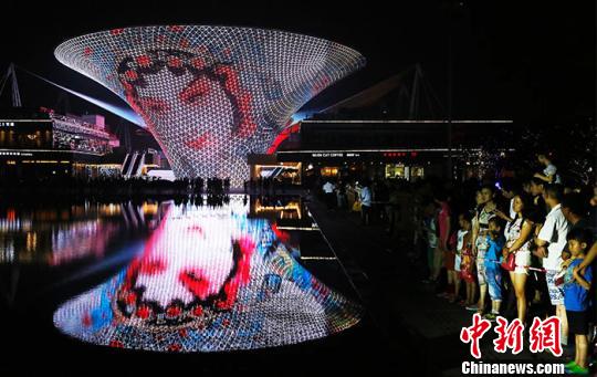 7月11日晚,一场美轮美奂的水墨灯光秀亮相世博源阳光谷,现场结合昆曲表演,以跨平台的组合方式将古典文化与现代科技完美融合,“流动的国粹”吸引了众多市民的眼球。汤彦俊 摄