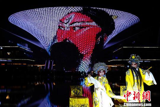 7月11日晚,一场美轮美奂的水墨灯光秀亮相世博源阳光谷,现场结合昆曲表演,以跨平台的组合方式将古典文化与现代科技完美融合,“流动的国粹”吸引了众多市民的眼球。汤彦俊 摄