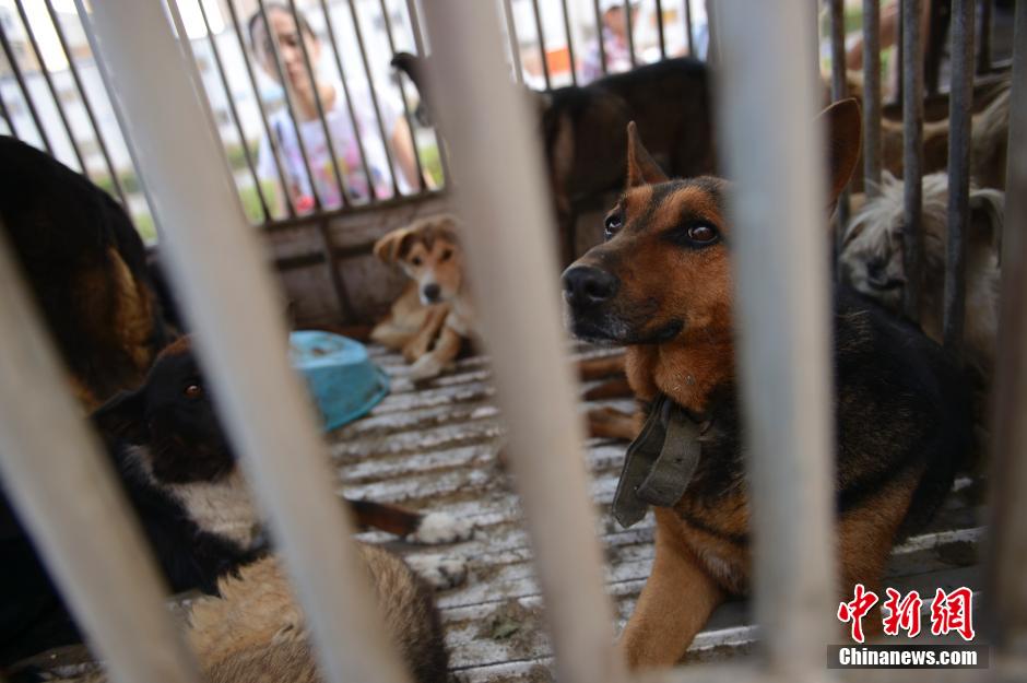 7月13日,运狗车内一只小狗使劲想钻出铁笼。当日,内蒙古呼和浩特一流浪狗救助组织拦截2辆无证运狗车,两辆车内有狗约30只,司机未拿出相关证件,之后志愿者与当地交警一起把狗运往呼市犬类留检所。据悉,两辆运狗车辆由于车辆私改被当地交警拦停进行相关处罚,之后志愿者得到讯息陆续赶来将车拦住。中新社发 刘文华 摄