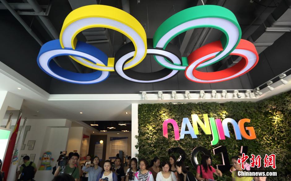 7月14日,媒体记者在南京青奥会青奥村内探访。青奥村占地约14万平方米,总建筑面积约50万平方米,包括6幢居住楼和4幢配套建筑。全村分为运行区、居住区、青奥村广场三大功能区。其中,居住区包括居民住房、居民中心、NOC储藏间、自助洗衣房、医疗诊所、多信仰区、餐厅、NOC服务中心、NOC商务中心、赛事信息中心、训练场馆、健身房;青奥村广场包括文化教育活动场所、娱乐室、媒体分中心、数字媒体中心、急救站、综合商店、咖啡厅、邮局、电话服务中心、银行、NOC共用维修间;运行区设有欢迎中心、访客中心、交通中心及青奥村运行管理中心。青奥会期间,青奥村将为约6000名运动员、随队官员、青年大使、青年记者,模范运动员和部分IOC官员提供住宿、餐饮及其它服务。2014南京青奥会将于8月16日至28日举行,共设28个大项222个小项,届时将有204个国家和地区的3808名15至18岁的青年运动员参赛。中新社发 泱波 摄