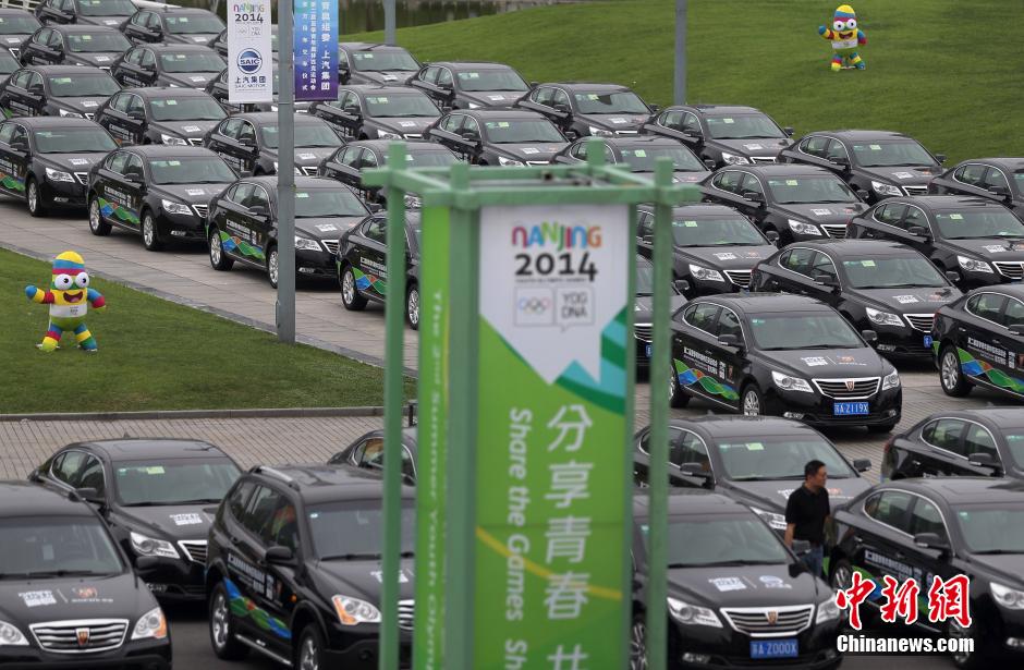 7月15日,1000辆青奥会官方用车在南京奥体中心正式交付给南京青奥组委会。据悉,这些车辆届时将承担赛事、接待、保障、班车等交通任务。中新社发 泱波 摄