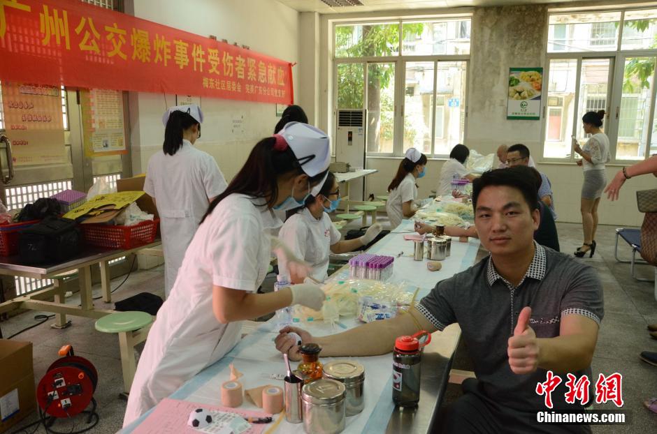7月17日,广州市民积极响应号召,踊跃为广州公交车爆燃事件伤者献血。发生在7月15日的广州公交车爆燃事件目前已造成2死33伤,其中多人重度烧伤,持续需要大量血液救治。广州献血中心为确保救治伤员的血液供应,已启动应急预案,并呼吁市民为伤者献血。图为广东侨资企业完美公司组织了300多名员工、经销商和消费者前往血站献血。中新社发 郭军 摄