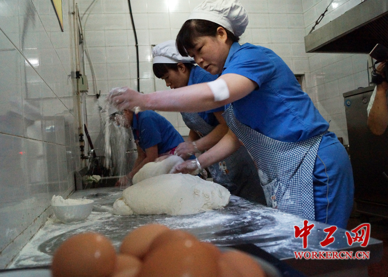6点多一点,山西焦煤西山煤电集团公司西铭矿的矿嫂们就陆陆续续抵达井口服务站,换上工服,开始她们的工作。切菜,和面,为了就是能让下夜班的职工升井后吃上一顿热乎可口的饭菜。(中工网记者杨灵 摄)