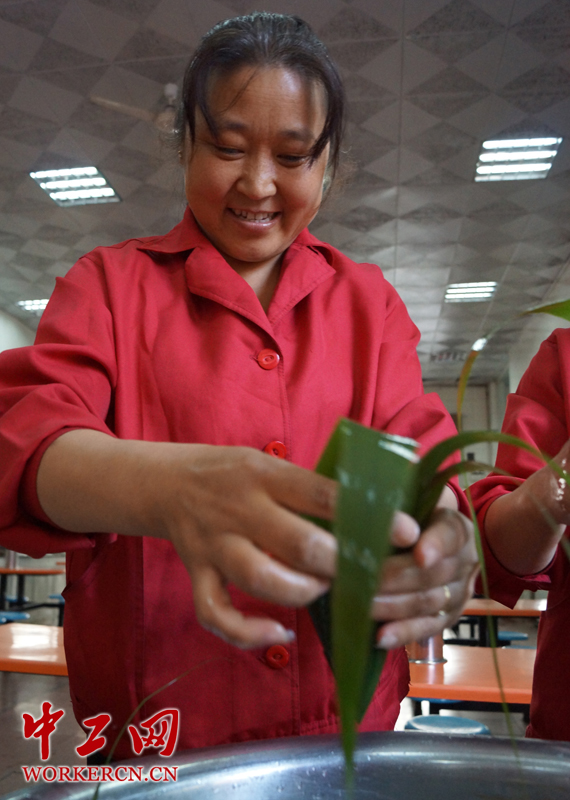 端午节前夕,矿嫂们开始包粽子,和大家一起过节。(中工网记者杨灵 摄)