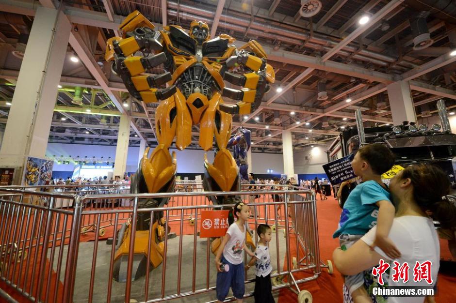 7月20日,“城市英雄季·变形金刚4”主题嘉年华巡抵江苏苏州,8米高“擎天柱”、6米高“大黄蜂”以及众多“变形金刚”珍品模型和《变形金刚4》原版电影道具等集中亮相,吸引了众多“刚丝”(变形金刚粉丝)前来享受这场激情的夏日狂欢。王思哲 摄