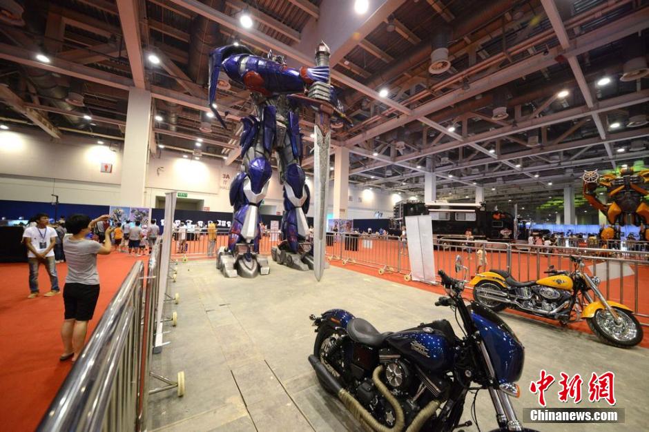 7月20日,“城市英雄季·变形金刚4”主题嘉年华巡抵江苏苏州,8米高“擎天柱”、6米高“大黄蜂”以及众多“变形金刚”珍品模型和《变形金刚4》原版电影道具等集中亮相,吸引了众多“刚丝”(变形金刚粉丝)前来享受这场激情的夏日狂欢。王思哲 摄