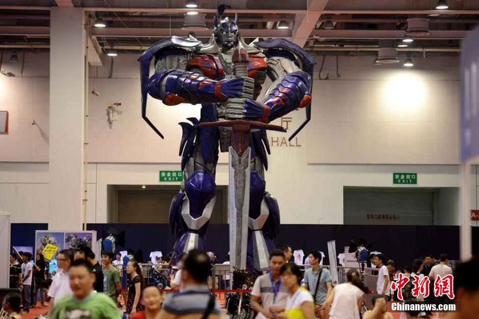 7月20日,“城市英雄季·变形金刚4”主题嘉年华巡抵江苏苏州,8米高“擎天柱”、6米高“大黄蜂”以及众多“变形金刚”珍品模型和《变形金刚4》原版电影道具等集中亮相,吸引了众多“刚丝”(变形金刚粉丝)前来享受这场激情的夏日狂欢。王思哲 摄