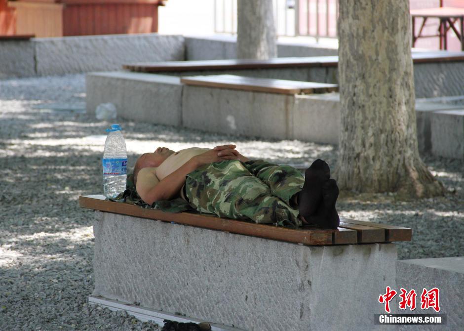 近日,西安气温持续高位,街头巷尾等公共场所的树荫下,当街午睡成为一道独特“风景”。张一辰 摄