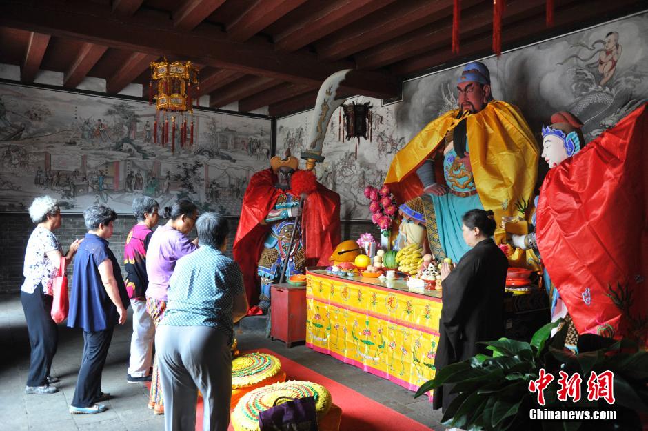 7月20日,山西太原大关帝庙,民众祭祀朝拜关公大帝。当日是中国农历六月二十四关帝诞辰1854周年纪念日,每逢此日,海内外的关氏宗亲及关公信众纷纷赴山西运城、太原等地关帝庙祭祀朝拜,纪念关公诞辰。中新社发 韦亮 摄