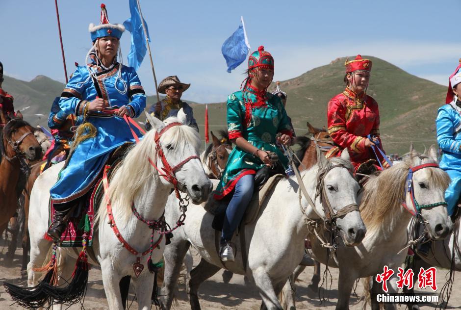7月20日至21日,新疆巴音布鲁克草原举行那达慕大会。那达慕,蒙古语为娱乐或游戏的意思。长期以来,蒙古族牧民在夏秋季节,择日举行赛马、摔跤、射箭比赛和商业活动。图为7月20日,当地巴音郭楞蒙古族自治州和静县蒙古族居民盛装与会。中新社发 肖欣 摄