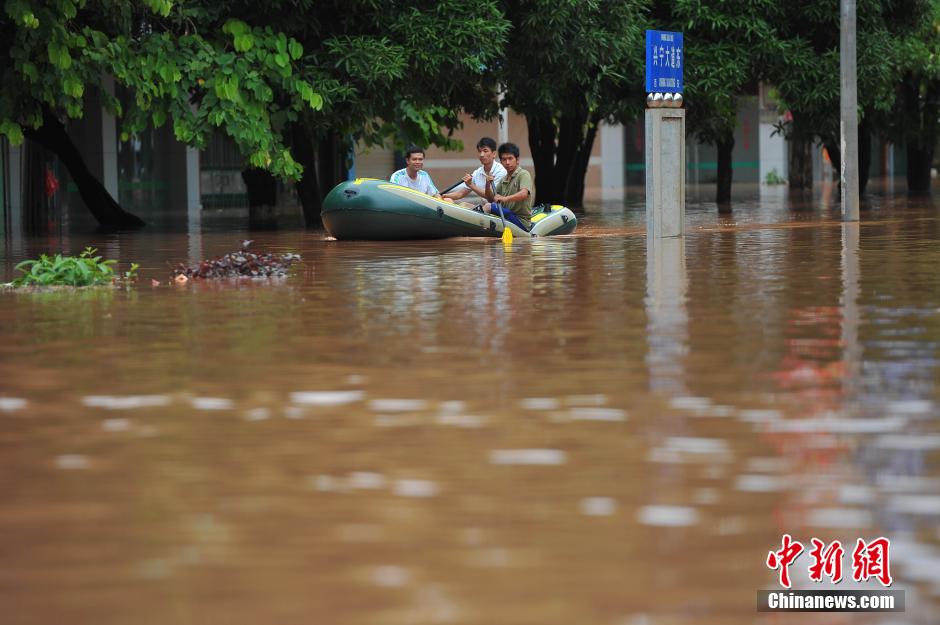 广西宁明洪峰过境 县镇被淹