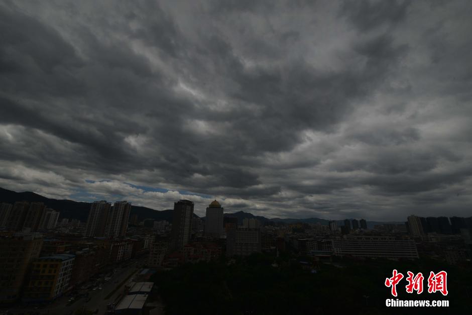 7月22日,福建莆田上空黑云压城。今年第10号台风"麦德姆"逐渐逼近福建沿海,当日,福建省气象台发布台风黄色预警,预计未来将以每小时20~25公里左右的速度向西北方向移动,强度继续加强,将于23日下午到夜里在福建省中北部(莆田至福鼎)沿海登陆。张斌 摄