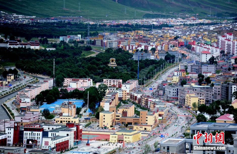 7月23日,玉树城区远处在地震中受损的白塔还未修复。遭受了2010年“4·14”强烈地震的玉树,经过4年的灾后重建,曾经山崩地裂、满目疮痍的震灾区已旧貌换新颜。站在山头,一栋栋具有藏区特色的新楼拔地而起,民众生活、居住环境以及交通等都有了较大的改善。中新社发 刘忠俊 摄