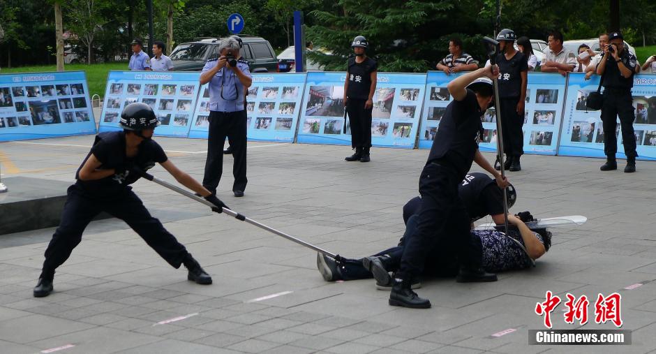 7月23日,北京市医院管理局向21家市属医院统一配发一批反恐防暴安全防护装备,包括防刺服、防暴钢叉、执法记录仪等。同时,在北京地坛医院,北京市公安局文保总队、市公安局特警总队等共同开展“制服歹徒”和“排除爆炸物”的反恐防暴演练,并展示刚刚配发的安防装备器材使用方法和效果。杜燕 摄