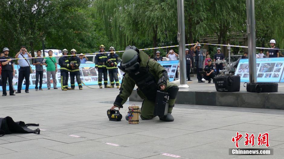 7月23日,北京市医院管理局向21家市属医院统一配发一批反恐防暴安全防护装备,包括防刺服、防暴钢叉、执法记录仪等。同时,在北京地坛医院,北京市公安局文保总队、市公安局特警总队等共同开展“制服歹徒”和“排除爆炸物”的反恐防暴演练,并展示刚刚配发的安防装备器材使用方法和效果。杜燕 摄