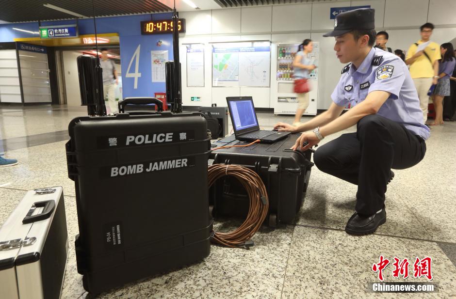 7月24日,在南京地铁2号线奥体东站,民警带着搜爆犬在站台内巡逻。随着第二届夏季青年奥林匹克运动会开幕日的日益临近,南京市公安局地铁公安分局当天公布,该市地铁将于8月1日至30日全线开展设备安检,期间所有进站乘客的物品必须接受X光通道机或手持式探测仪的检查后方可进站乘车,目前所有安检设备正陆续进驻地铁。中新社发 泱波 摄