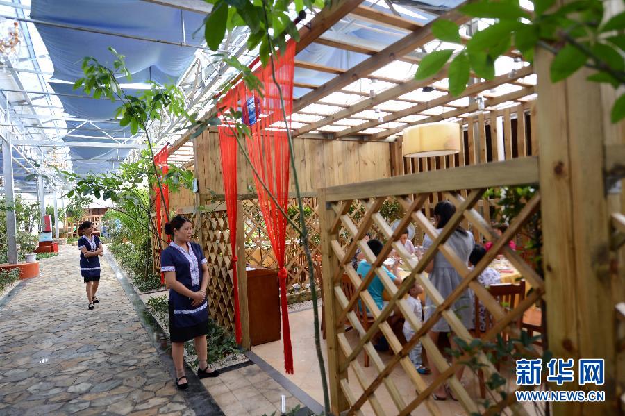 近日,在江西新余市欧里镇昌坊村,一家光伏餐厅正式营业。据介绍,该餐厅占地4800平方米,集餐饮、光伏屋顶发电、智能化生态花园于一体,可同时容纳600人用餐。餐厅充分利用屋顶空间,合理布置光伏发电板的角度和位置,全部安装了多晶硅光伏发电板,按照当地平均日照时间估算,项目一年可发电约55万度。新华社记者 周科 摄