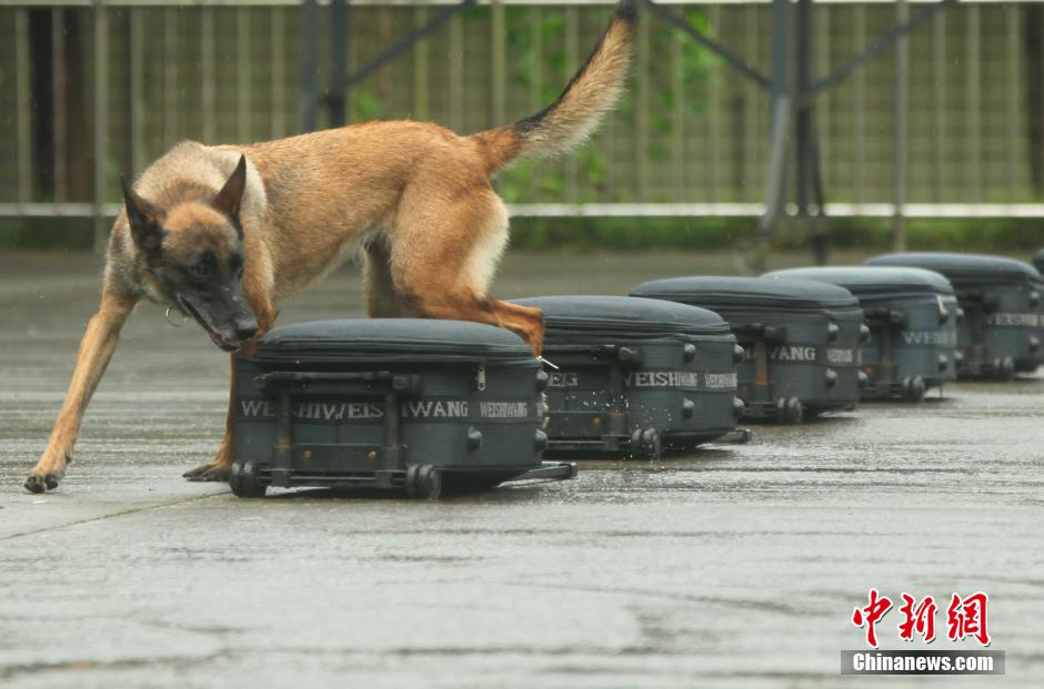 7月24日,重庆训犬民警带领警犬正在练习血迹搜索、追踪、搜毒、搜爆等比赛项目。据悉,为提高警犬技术服务公安工作、服务实战的能力和水平,公安部每隔 4年举办一次的全国警犬技术比赛。比赛时间定于10月份。此外,为备战此次全国警犬技术比赛,重庆训犬民警分别开展了集中培训、海选、初选,最后将进行赛前集训。9月中旬,将根据训练情况,最后确定6名正式参赛民警及助训员,以最好的状态参赛。钟欣 摄