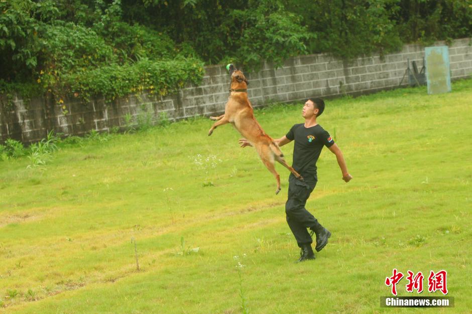 7月24日,重庆训犬民警带领警犬正在练习血迹搜索、追踪、搜毒、搜爆等比赛项目。据悉,为提高警犬技术服务公安工作、服务实战的能力和水平,公安部每隔 4年举办一次的全国警犬技术比赛。比赛时间定于10月份。此外,为备战此次全国警犬技术比赛,重庆训犬民警分别开展了集中培训、海选、初选,最后将进行赛前集训。9月中旬,将根据训练情况,最后确定6名正式参赛民警及助训员,以最好的状态参赛。钟欣 摄