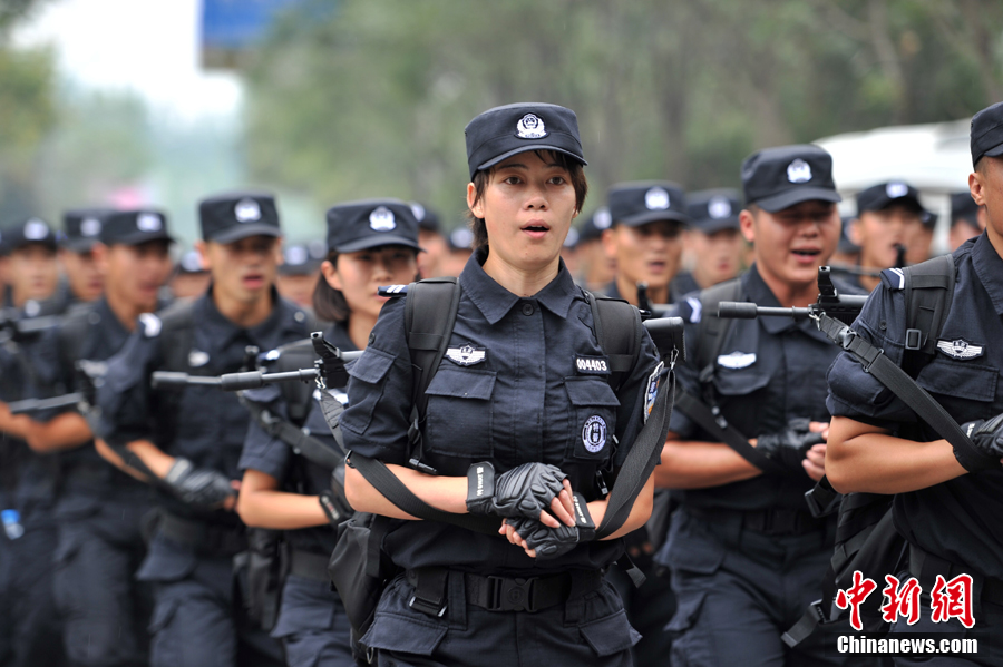 7月24日上午,北京市公安局开展实兵徒步拉动反恐演练。