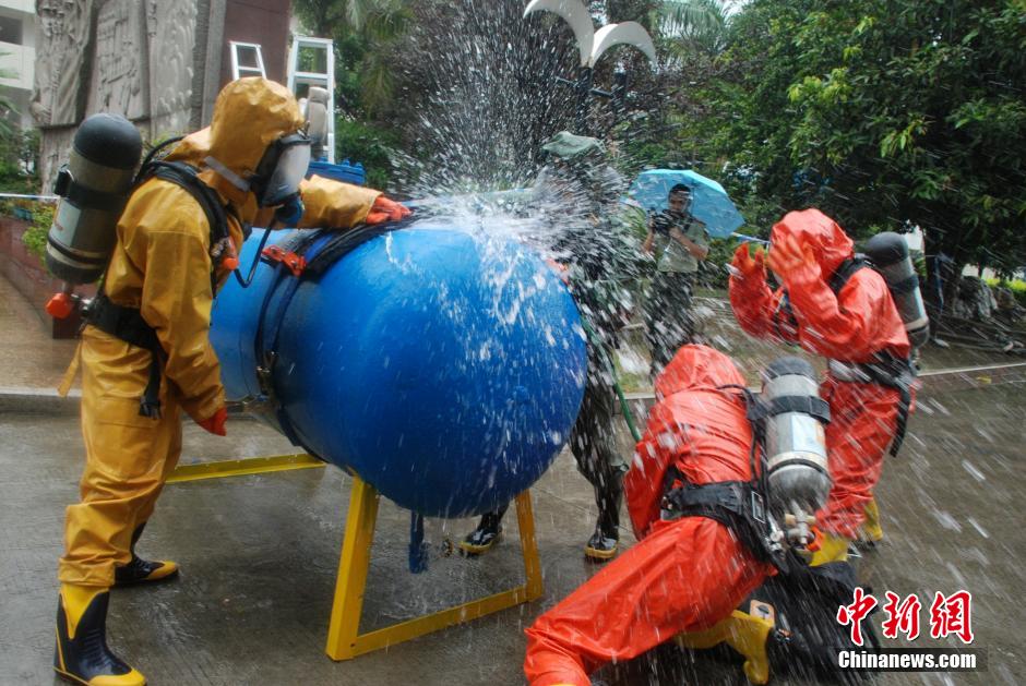 图为参赛队员正在“堵漏”。 周杨东 摄