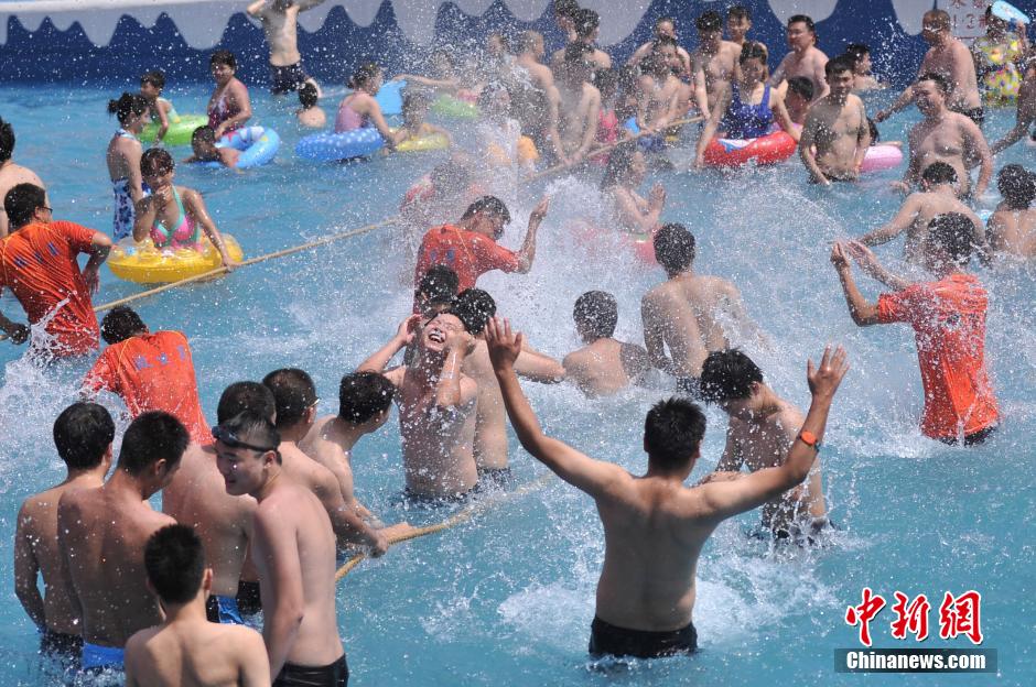 7月25日,重庆洋人街一水上乐园吸引不少市民玩水纳凉。重庆迎来连日高温天气,市民选择各种纳凉方式度过炎热的夏季,水上乐园便是重庆市民最青睐纳凉活动之一。重庆市民频出奇招妙计与高温作战,拔河比赛本应是冬天热身活动,市民夏季水中反串拔河比赛,炎热的天气也让市民有更高的激情释放。陈超 摄