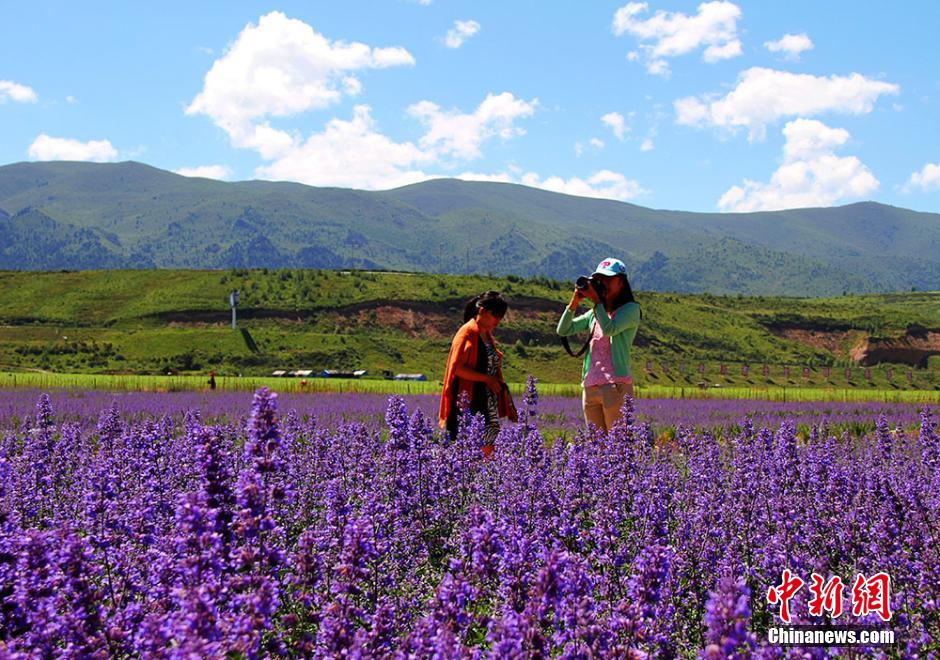 四川松潘薰衣草绽放 紫蓝色花海惹人醉
