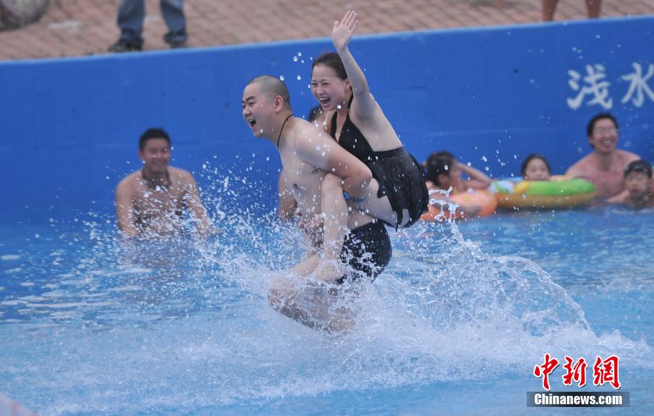 8月2日是七夕情人节。1日晚,重庆涪陵红酒小镇水上乐园背“媳妇”、画红唇等比赛项目吸引众多重庆情侣玩水上大战迎七夕。陈超 摄