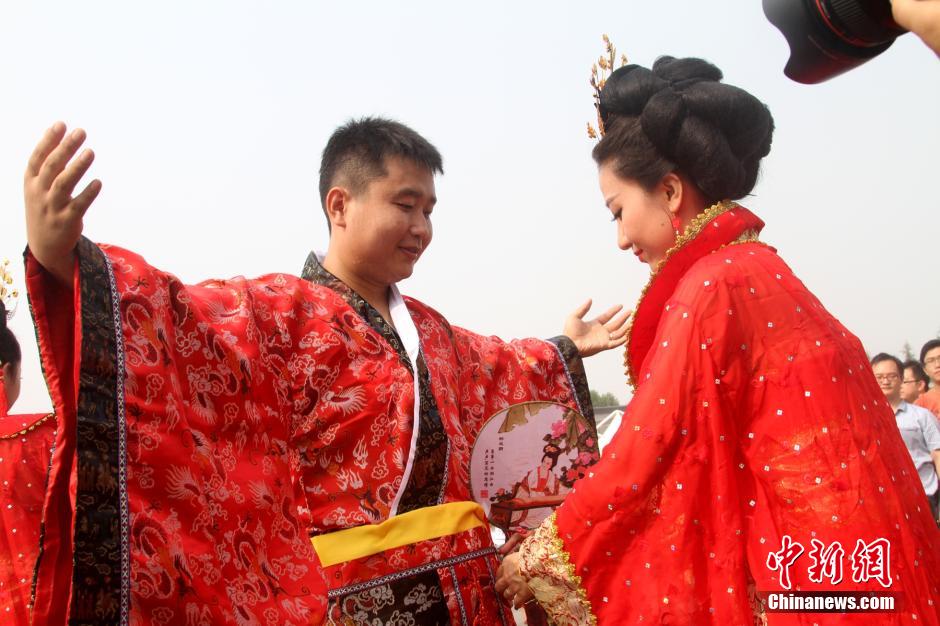 西安新人七夕“穿越”唐朝举行集体婚礼