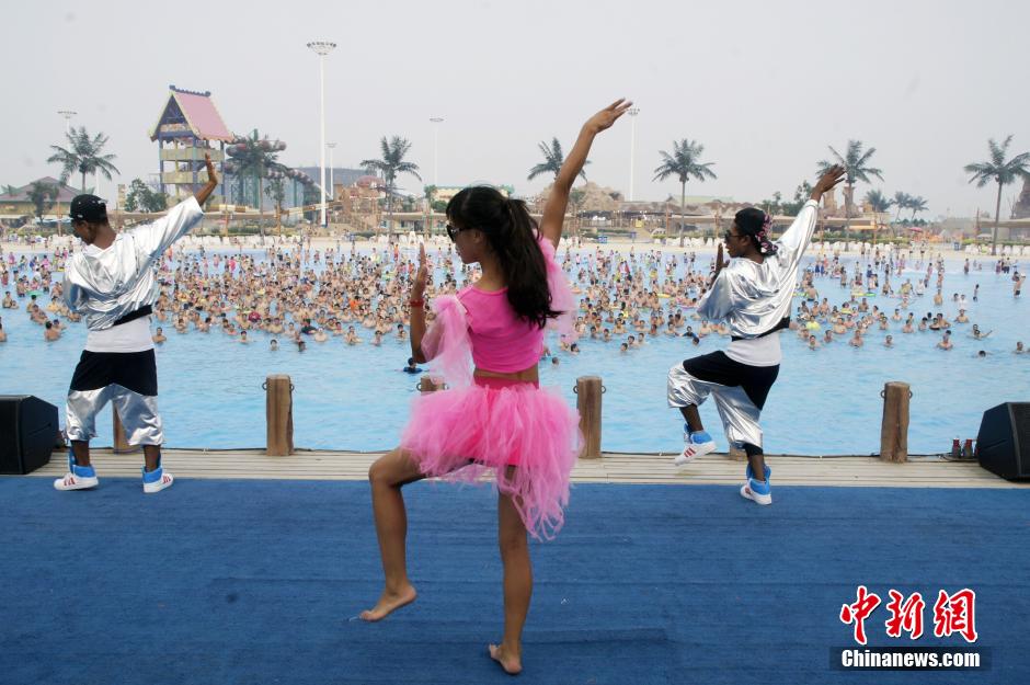 天津千人水中齐跳“小苹果”