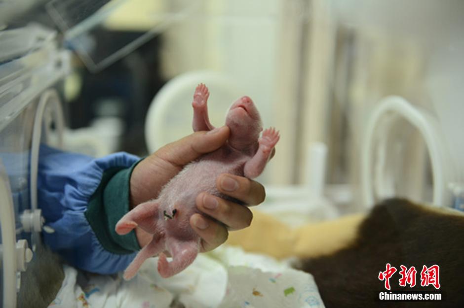 8月4日,中国保护大熊猫研究中心雅安碧峰峡基地对外宣布,海归大熊猫“苏琳”于8月3日下午在研究中心碧峰峡基地顺利产下一对双胞胎熊猫宝宝,这是今年中国保护大熊猫研究中心出生的首对双胞胎熊猫宝宝。图为苏琳产仔。 中新社发 罗波 摄