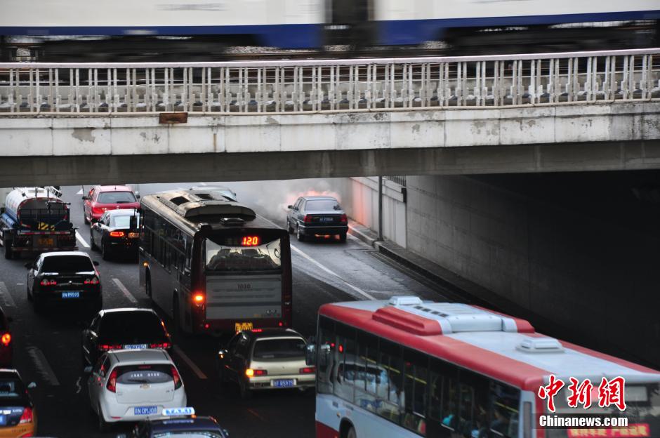 8月4日下午17时45分许,北京,记者在莲花桥下遇到一起汽车自燃事件,车辆从冒烟到起火仅短短4、5分钟。10分钟后,交警赶到现场疏导交通,随后消防车赶到现场扑灭大火。 中新网记者 陈海峰 摄