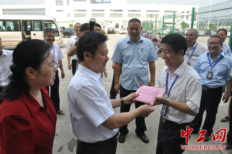 集团公司领导为一线员工送去慰问津贴。 中工网记者 韩靖 摄