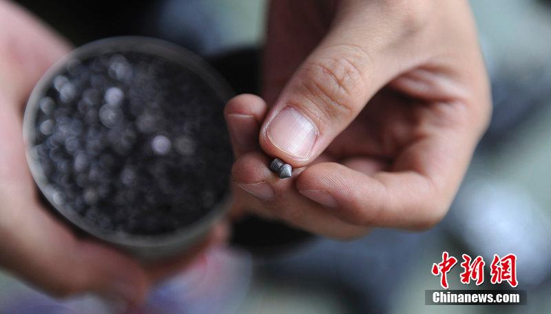 2014年8月11日,沈阳,警方正在整理收缴的钢珠弹。王齐波 摄 图片来源:CFP视觉中国