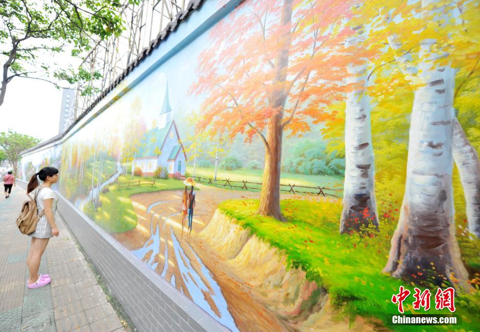 8月20日,厦门市湖里区江头街道乌石浦油画村,一排由油画村的画家们在围墙上绘出的各种油画成为市区街头一道靓丽风景,吸引了许多过往游客和市民的眼球。据了解,1992年,第一批300多名画师、画工进驻乌石浦村,由此拉开了乌石浦油画村发展的序幕。随后,厦门商品油画生产、销售迅速向乌石浦村集聚;如今,厦门已成为全球三大商品油画生产基地之一。中新社发 张斌 摄