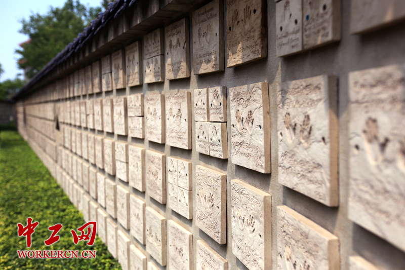 这面墙上用英文写着孩子们的姓名和编号。抬眼望去,成排的小手印可爱而鲜活。