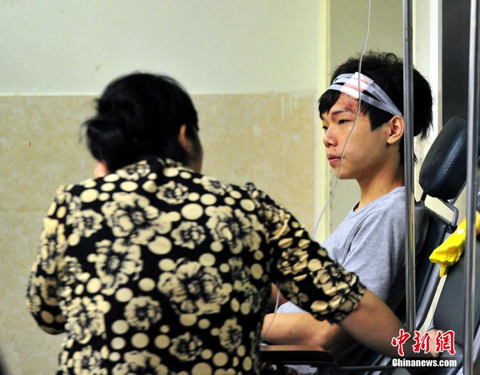 8月21日,伤者在广州武警医院接受治疗。当日,广州市天河区一名疑似患有精神病的湖南邵阳籍男子当街持刀砍伤8人,警方赶到现场,与民众一道将持刀伤人的嫌疑人制服,并协助医务人员将8名伤者送往医院医治。据嫌疑人家属反映,范某求曾有精神病史。目前,案件正在进一步审理中。中新社发 陈骥旻 摄