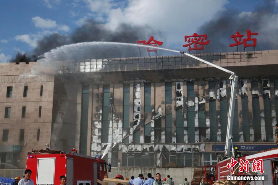 8月21日17时19分,新疆哈密消防支队119接警中心接到报警,由中铁12局承建的哈密市新火车站(在建施工工地)发生火灾,哈密消防支队立即调集7车35人前往火灾现场实施扑救。据悉,该火灾因施工单位作业过程中不慎引燃外墙保温材料引发火灾,过火面积约600平方米,未造成人员伤亡。当日18时40分火势已基本扑灭,目前事故损失正在调查核实中。中新社发 孙亭文 摄