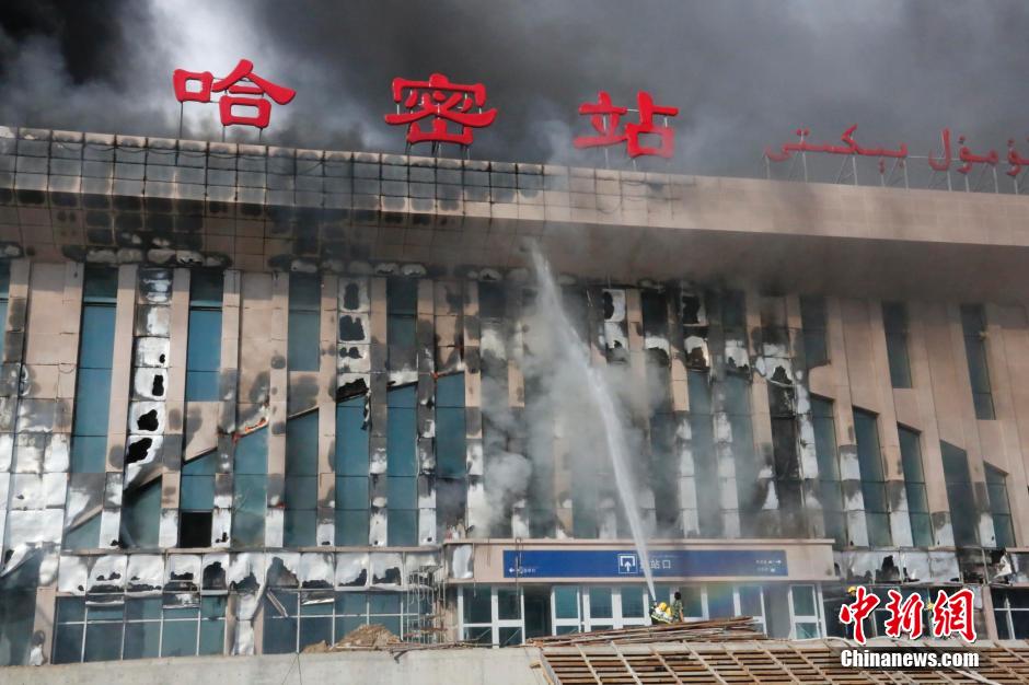 8月21日17时19分,新疆哈密消防支队119接警中心接到报警,由中铁12局承建的哈密市新火车站(在建施工工地)发生火灾,哈密消防支队立即调集7车35人前往火灾现场实施扑救。据悉,该火灾因施工单位作业过程中不慎引燃外墙保温材料引发火灾,过火面积约600平方米,未造成人员伤亡。当日18时40分火势已基本扑灭,目前事故损失正在调查核实中。中新社发 孙亭文 摄