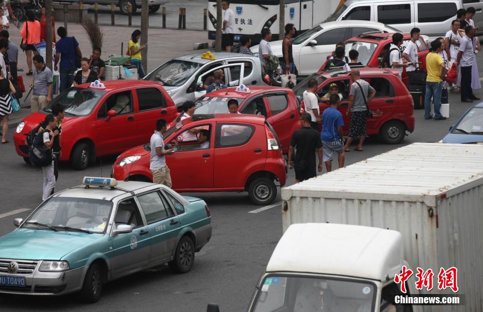 8月23日,山东省青岛市长途汽车站、火车站、前海一带,一些无牌照的红色小车停在路边,招揽外地游客,从事非法营运。据行内人士透露,这种外表为红色的黑出租车,一无车辆牌照,二无驾驶证照,三无道路运输从业资格证,四无出租车服务合格证。这种“四无”黑出租车,明目张胆地公开营运多年。对于这种现象,有外地游客把它总结为青岛两大怪:散啤装进塑料袋,黑车出租公开来。中新社发 鲁青民 摄