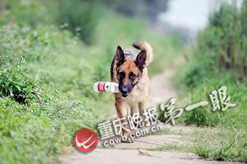 渝中区菜园坝至滨江公园河段,每天早上6时30分左右,都会有两个熟悉的身影出现。它们是欢欢和金刚,两条德国牧羊犬。它们喜欢下江游泳,耍尽兴了就自己上岸去找主人。昨日下午,欢欢和金刚在主人蒋光良的带领下又来到长滨路滨江公园,受到人们热烈欢迎。蒋光良告诉重庆晚报记者,自己家住菜园坝附近,在物流市场经营一家不锈钢门市,爱犬下水后自己就去上班。他介绍,欢欢今年3岁半,2011年从一个狗贩子手中花800元买来,金刚是它的儿子,8个月大。 图为在滨江路护堤上捡废弃塑料瓶。