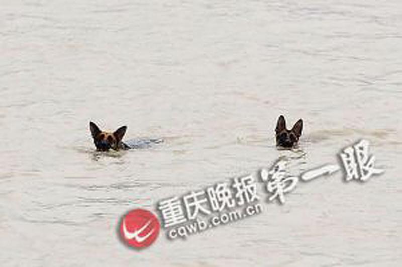 蒋光良说,每次带着欢欢和金刚出门看到地上的塑料瓶都会叫它们捡回来,积累多了再拿去卖,有一年光塑料瓶就卖了1000多元。“它们聪明,只要塑料的,玻璃瓶还不得要。”蒋光良的妻子淦登秀说,因为担心狗咬人,自己最开始反对丈夫养狗。“现在这两条狗不仅不咬人,买菜帮你提菜篮,回家给你端板凳,平时就在店里守店。乖得不得了。”淦登秀说,慢慢的自己也喜欢上了这两条狗。淦登秀说,曾经有人出6000元想买金刚,他们一口拒绝了。图为来到江边,欢欢和金刚就忍不住要跳到水里去游泳。图为蒋先生训练欢欢在两个乒乓球台间跳跃 图片来源:重庆晚报