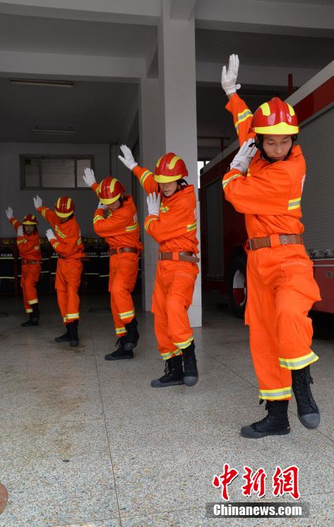 8月26日,消防官兵表演消防版的“小苹果”。河北省邯郸市公安消防支队的消防官兵利用休息时间,历经半个月,编排了邯郸消防版的“小苹果”。此版“小苹果”与其他版本不同,为让大家关注消防,共筑平安邯郸,消防官兵巧妙地将脍炙人口的“小苹果”歌词改编成了诙谐、幽默、朗朗上口的消防宣传语。 中新社发 郝群英 摄