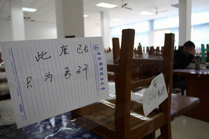 济南大学材料学院的几名男生告诉记者,暑假开始后,校图书馆开始装修,原来被学生用于备考的房间不能利用,考研生就都挤到第十教学楼这6间教室来了。25日,教学楼刚一开门,等候已久的考研生便手持锁链、铁丝等争先恐后地挤入,展开抢位大战。图片来源网络