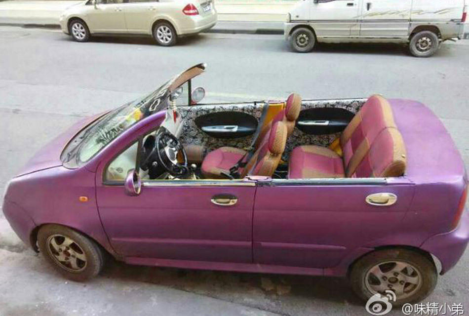 “这是一辆奇瑞QQ,车顶被切割掉,改成一辆跑车。”民警核实,这辆“跑车”经过非法改装,没有悬挂前后号牌,在前挡风玻璃上还喷涂了雪佛兰标志,冒充跑车。