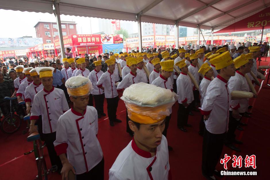 图为百位厨师准备削面。中新社发 张云 摄