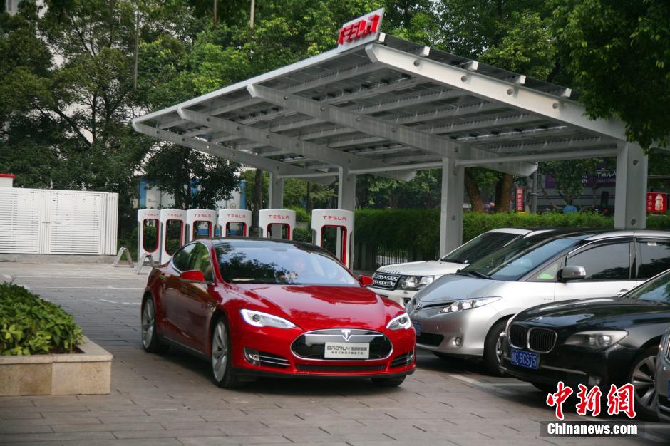 8月28日记者在杭州黄龙饭店里看到,12个特斯拉充电站已正式启用,其中6个是快速充电站,6个是慢速充电站,一辆红色的特斯拉正在此处快速充电。据悉,中国出台对“三公消费”和“八项规定”后,浙江星级酒店和高端餐饮依赖固定企事业大客户销售渠道的好日子已经不再,而有一定消费能力的新能源车主成为浙江高端酒店认为值得开发的新市场空间。 中新社发 李晨韵 摄