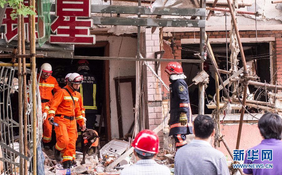 8月29日,北京左家庄北里12号楼1层,消防人员带着搜救犬从屋内走出。 8月29日5时42分,北京朝阳区左家庄北里12号楼一住户家发生爆燃,已造成多人受伤,1人死亡。目前搜救工作仍在进行,事故原因正在调查中。新华社记者张宇摄